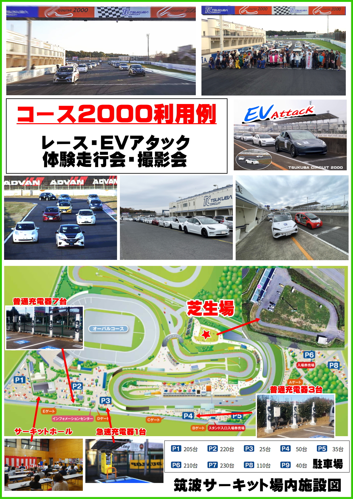 1)模擬レース(20分) 2)タイムアタック(20分) 3)体験走行(5周×40台まで)